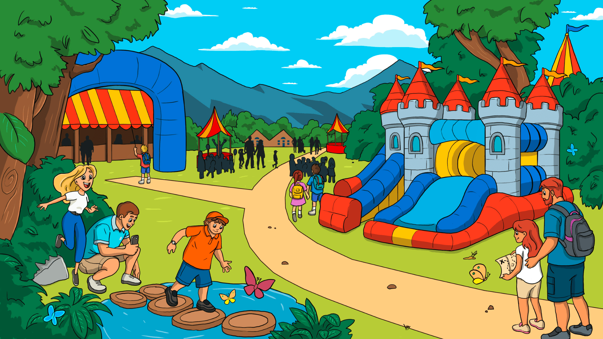 Das Gelände wird in verschiedene Erlebnisbereiche aufgeteilt, wie eine große, gemeinsame Schatzsuche.Jede Ecke erzählt ihre eigene Geschichte.